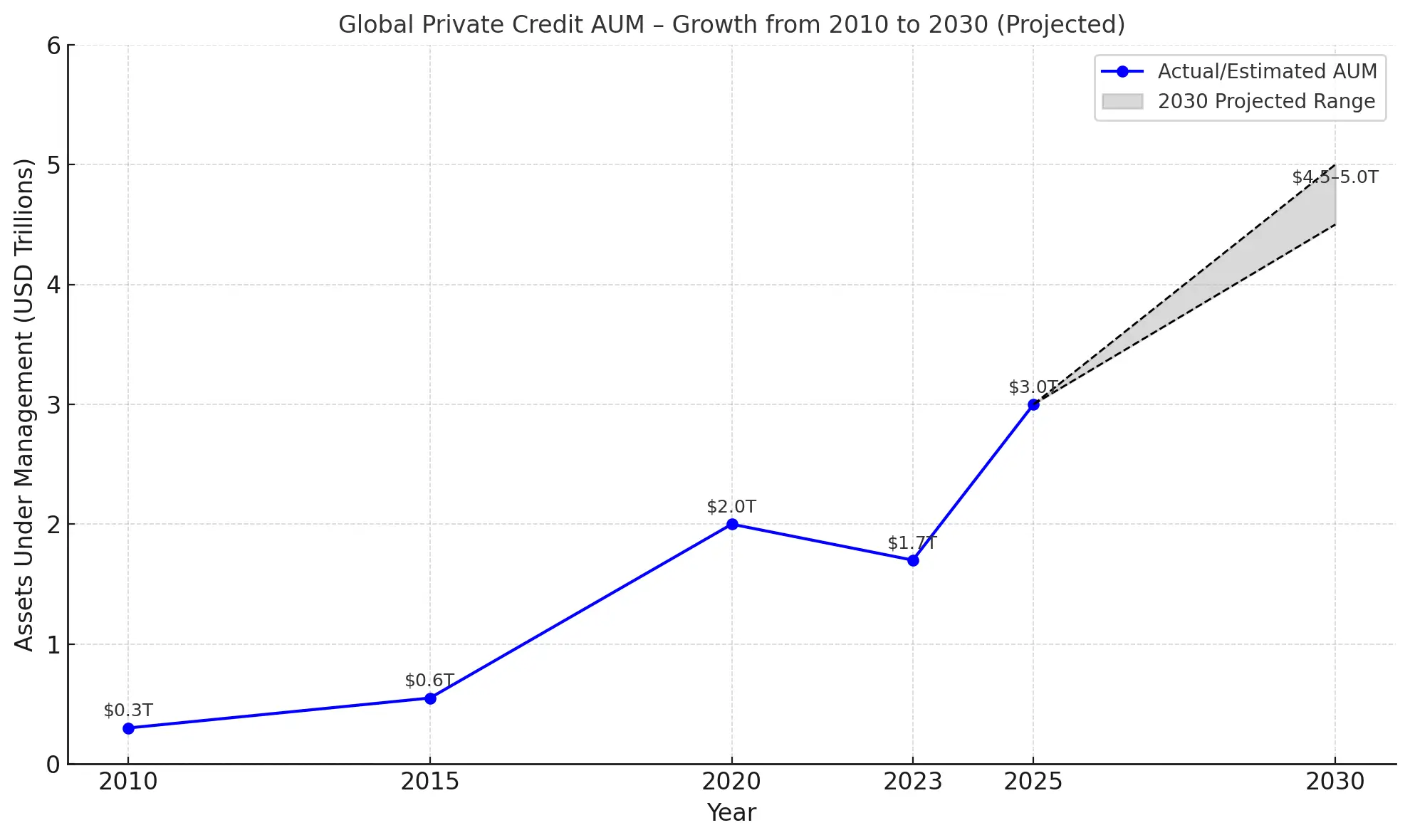 Global Private Credit AUM Growth (2010–2030)